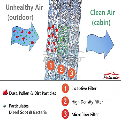 ▼Spec.: 9.06" (Length), 8.27" (Width), 1.34" (Height); Three-layer fabric; Installation instructions included. Benefits: (1) Reducing at least 98% of Particles of 5-100 microns from the air entering the cabin. (2) Activated carbon cabin filter provides extra protection by absorbing the airborne infectious agents & allergens. (3) Protect HVAC air conditioning performance.