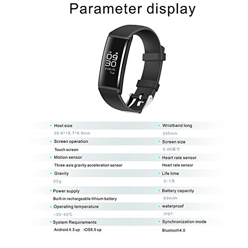 【TRACKS YOUR DAILY ACTIVITY】 Such as steps, distance, calorie consumed, etc. You can view your daily, weekly and monthly activity data in the App when the tracker is connected with your phone via Bluetooth.Wear it on your wrist and keep you motivated towards your fitness goals.