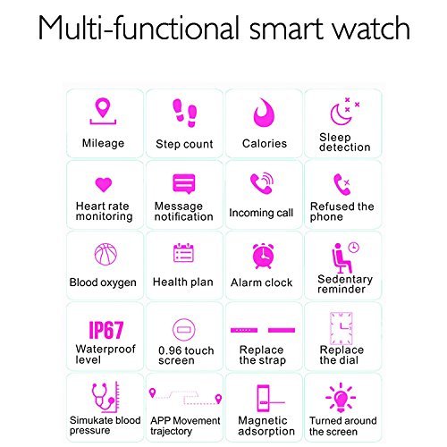 【MAIN FUNCTIONS】 SMS/Incoming Calls Reminder, Display the data and time, Steps Counter, Sleep Monitor, Heart Rate Monitor, Blood Pressure Monitor, Blood Oxygen Monitor, Sedentary Reminder, Alarm Reminder, Sports Plan Setting, Hung up the incoming calls(This function only for Android system).
