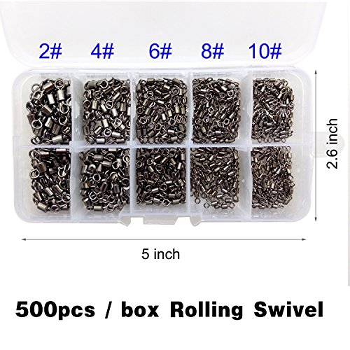 Studio : JL Sport Publisher : JL Sport Binding : Misc. Product Description 1) Shaddock Fishing Super Strong Rolling Swivel 2)Reusable Plastic Box Keeps Swivel Organized Easily Stored 3)Package Included: #10: 140pcs #8: 120pcs #6: 100pcs #4: 80pcs #2: 60pcs 4. Please Enjoy Your Shopping with OurRolling Swivel 0