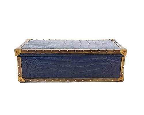 Benzara Rectangular Polyresin Alligator Skin Decorative Box, Dark Blue