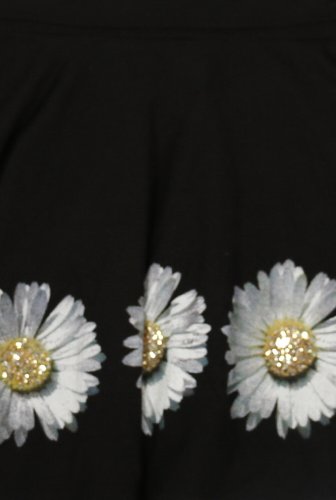Daisy Printed Skirt With Rhinestone Embellishments. -95% Rayon 5% Spandex -Made In Usa