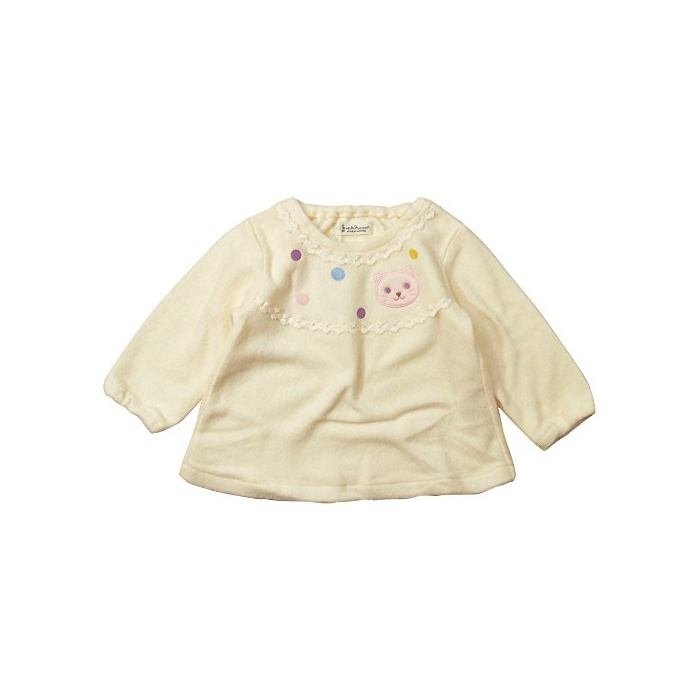 원본상품명: 《秋冬物》(日本製) Pample Mousse(パンプルム?ス) A/Cパイルベロア調ネコ刺?モ?ルレ?ス付オ?バ?ブラウス 80cm /IV NO.DP-63261