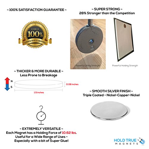 12 Super Strong Neodymium Rare Earth N45 Disc Magnets, 1.5”D x 0.08”H | Triple Nickel Coated for Home, Crafts, Therapy, Classroom, Industrial Applications & More by Hold True Magnets
