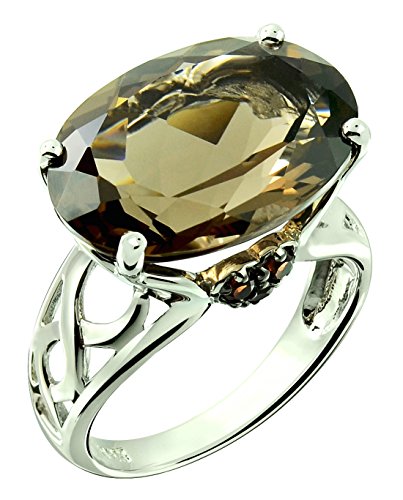 -. Binding : Jewelry -. Brand : RB Gems -. Color : Black -. Department : womens -. Feature : 1 Piece of Oval 18x13 mm Fine Grade Smoky Quartz / 6 Pieces of Small Round Garnet as side stones / Made with Nickel-Free Sterling Silver with Rhodium-Plated, Black-Rhodium-Plated on side stones / Filigree on both shanks / Mirror-like Finish, Polished Finish underneath the ring -. Label : RB Gems -. Manufacturer : RB Gems -. Model : SR120301SMK -. MPN : SR120301SMK -. PartNumber : SR120301SMK -. ProductGroup : Jewelry -. ProductTypeName : FASHIONRING -. Publisher : RB Gems -. Studio : RB Gems -. Title : 11.76 Carats Smoky Quartz with Garnet Rhodium-Plated 925 Sterling Silver Statement Ring