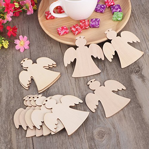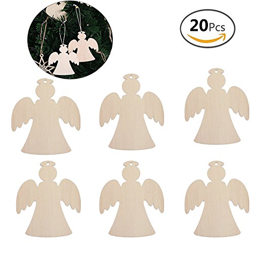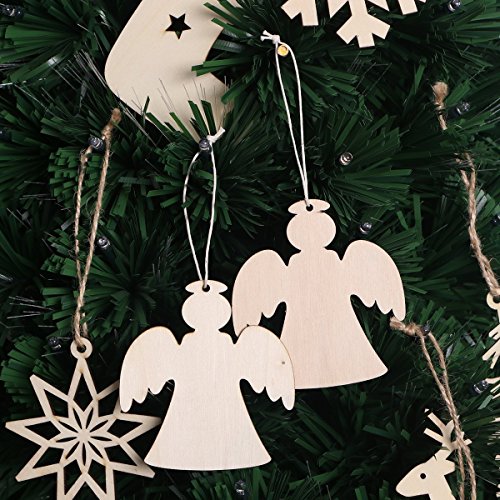 BinaryABC Wooden Angels,Christmas Wooden Hanging Decorations Embellishments for DIY Craft Christmas Tree Home Decor 20pcs
