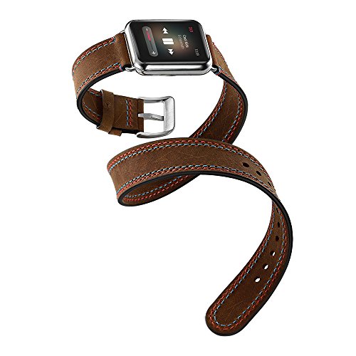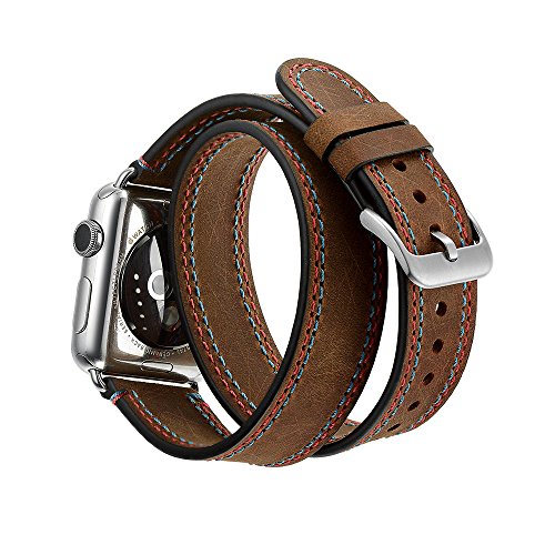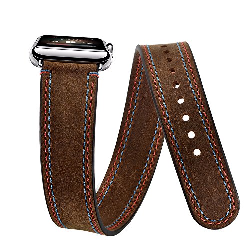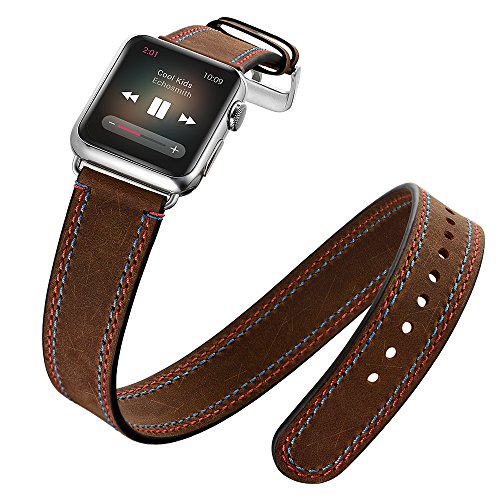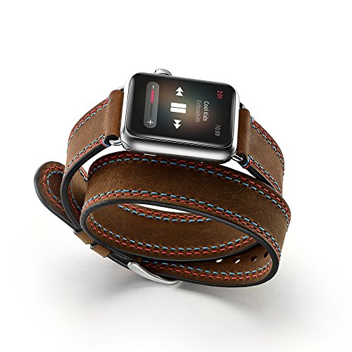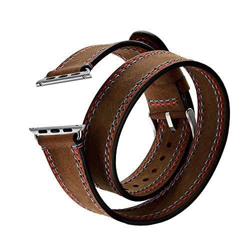 Elobeth Apple Watch Band,iwatch Band Apple Watch Leather Band, iWatch Band Genuine Leather Band Cuff Bracelet Wrist Watch Band with Adapter for Apple Iwatch (42mm Blue)