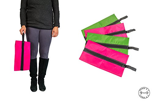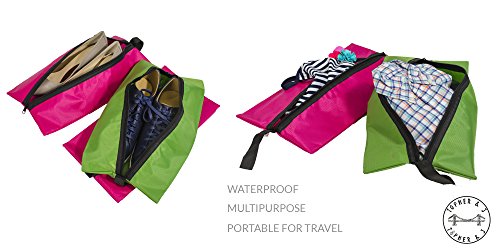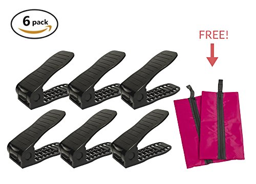 2018 NEW Black Shoe Slots Set of 6 - Plastic Closet Shoe Space Saver Bundle with Nylon, Waterproof Shoe Organizer Bags Set of 2 (Rose Red)
