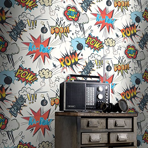-. Feature : High quality comic themed wallpaper / Ideal for teenagers' bedrooms / 10m (32.8 feet) long x 53cm (21in) wide / 26.5cm pattern repeat / Easy to apply, washable, paste the paper wallpaper