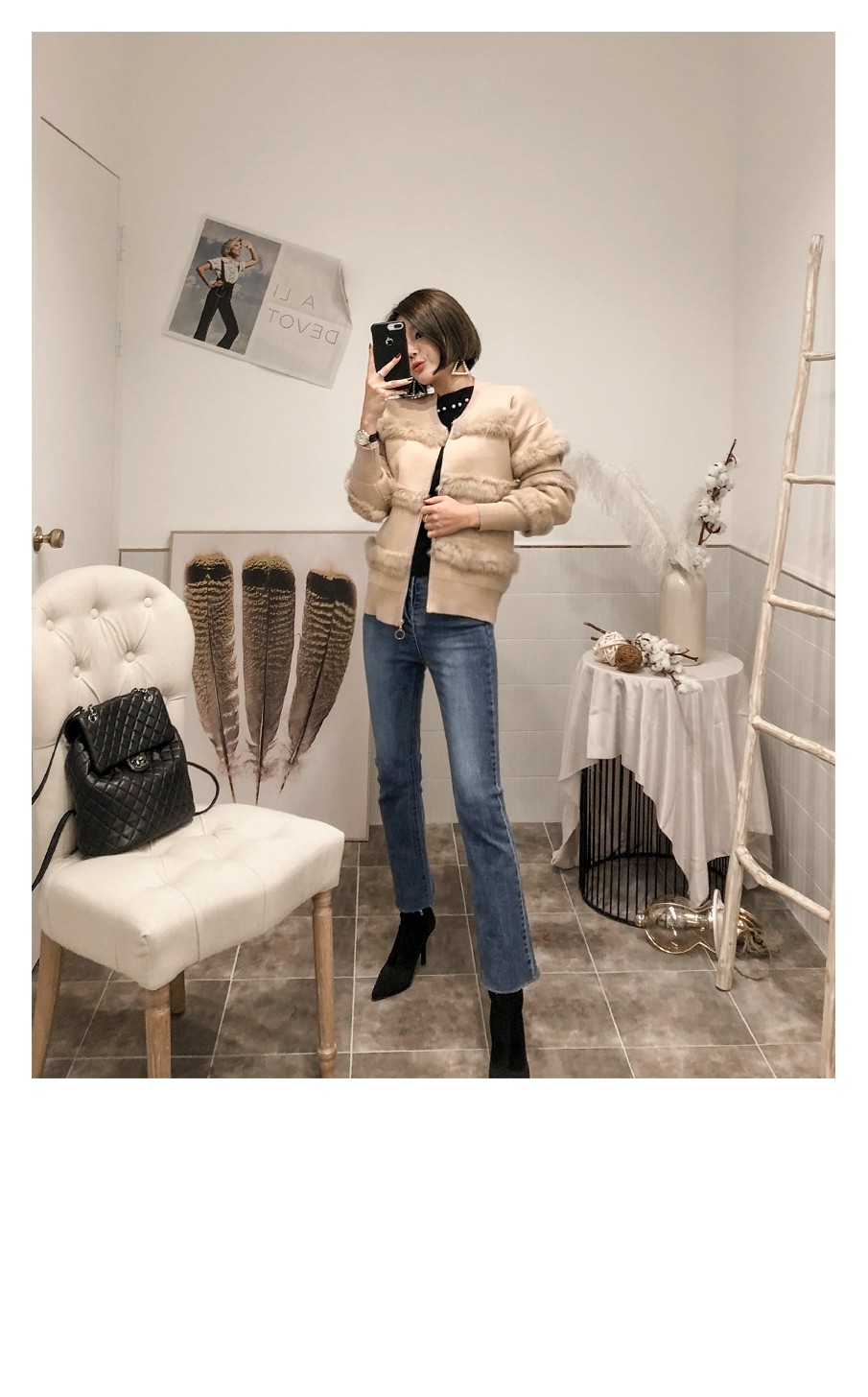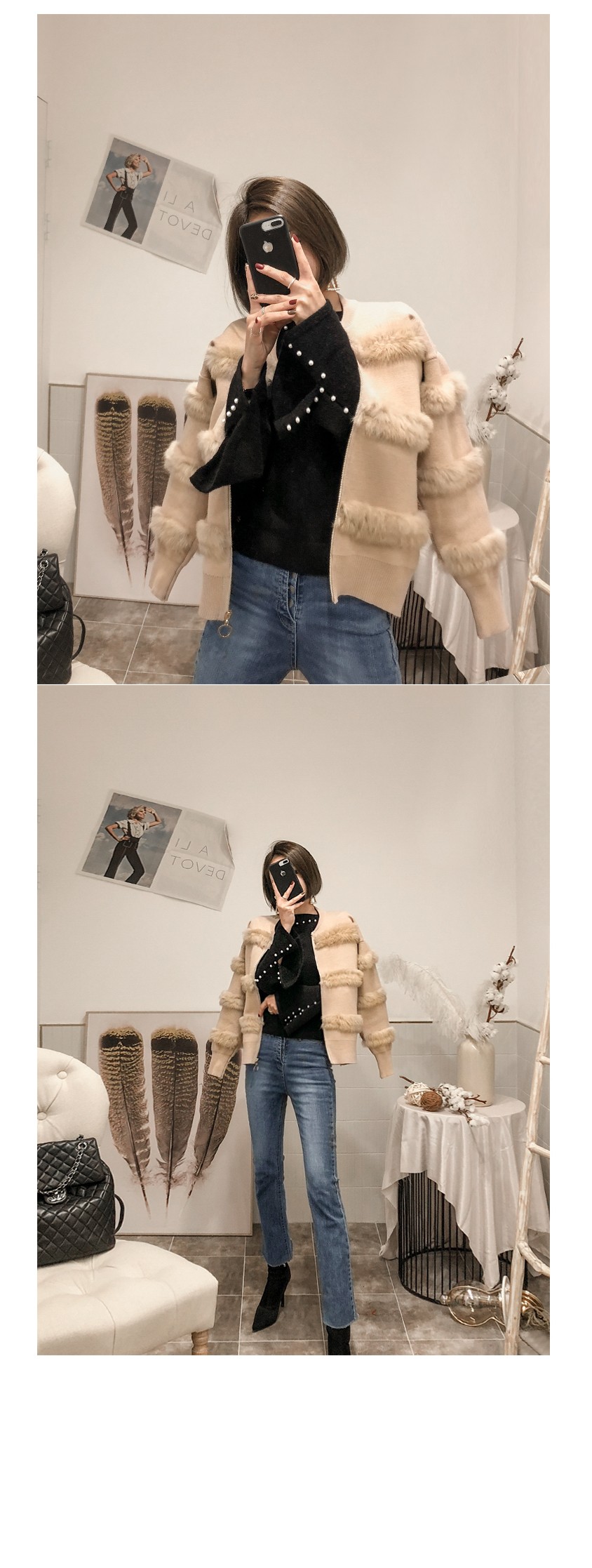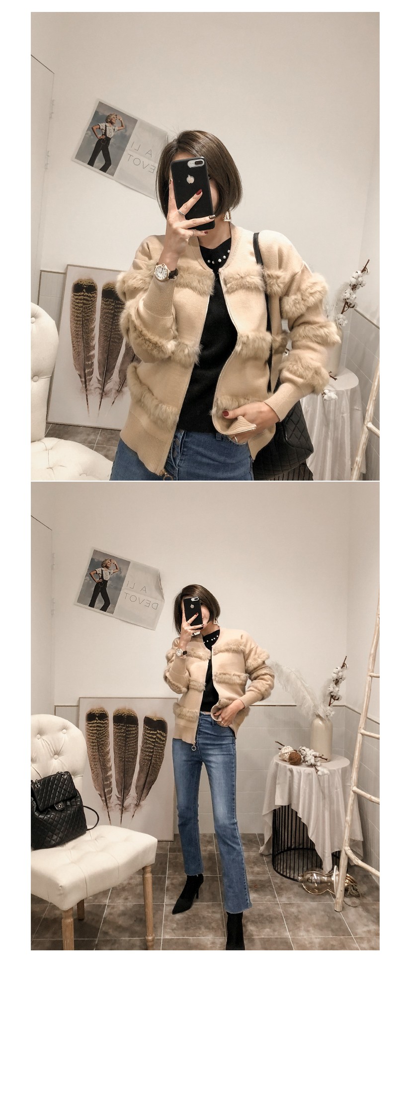 부드러운 퍼 디테일로 고급스러운 포인트를 주었어요