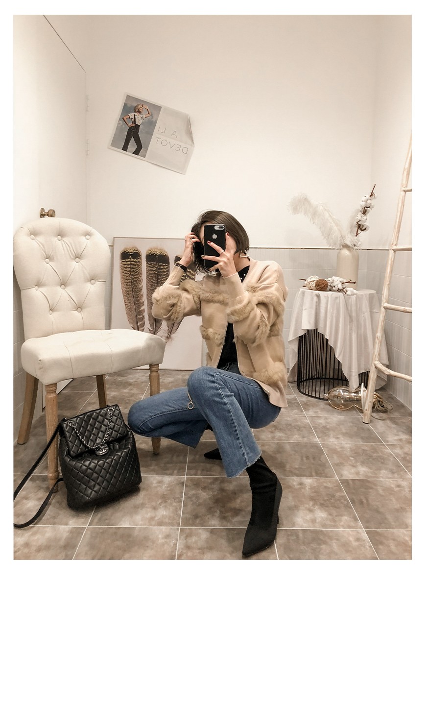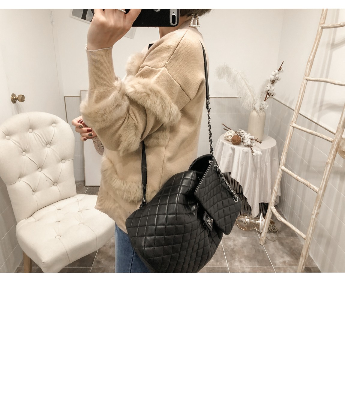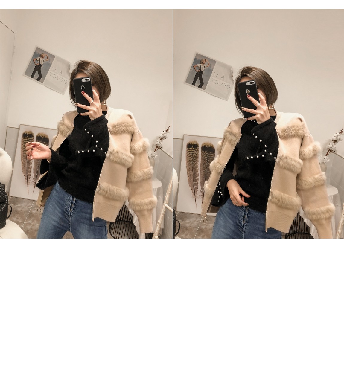 부드러운 퍼 디테일로 고급스러운 포인트를 주었어요