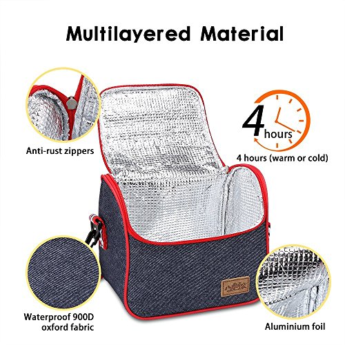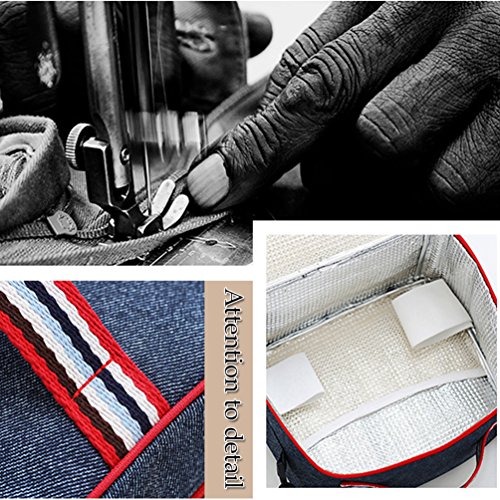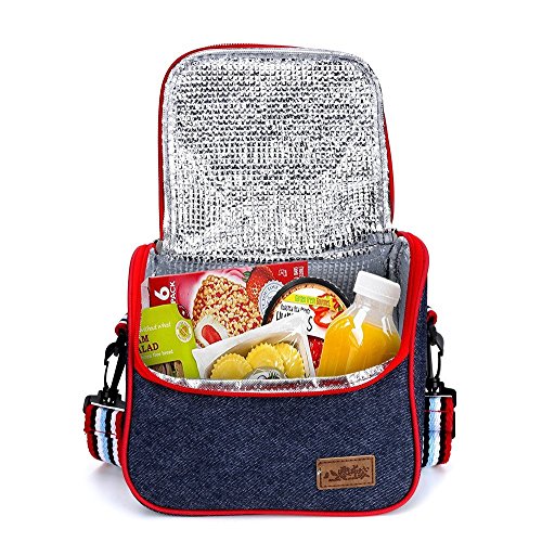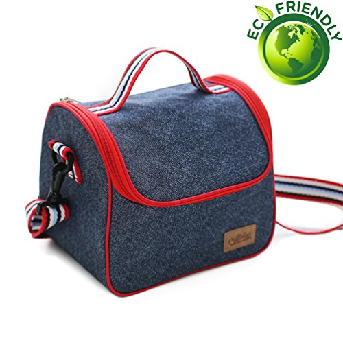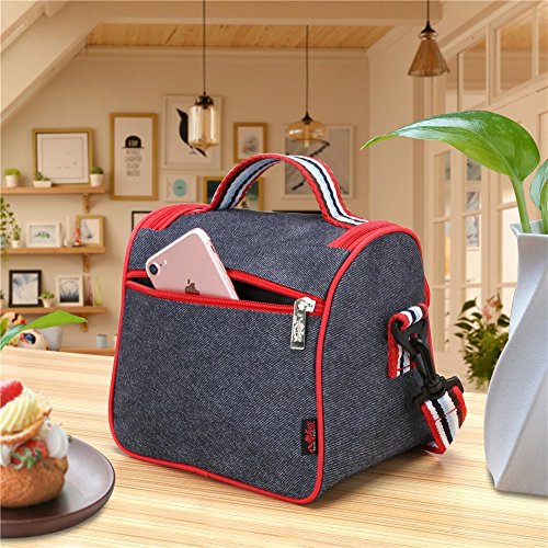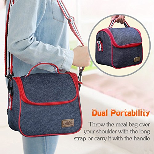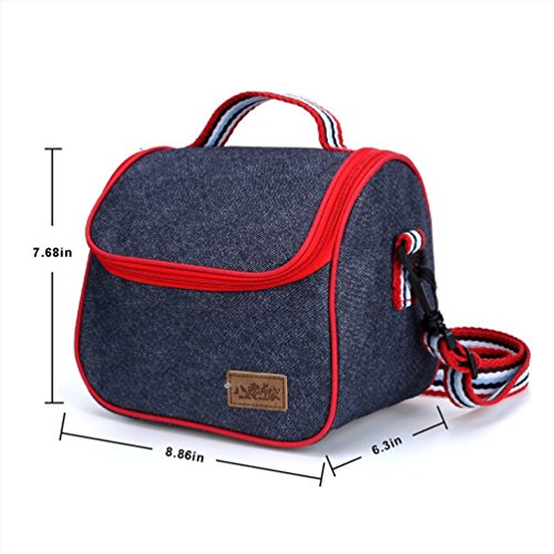 Insulated Lunch Bag for Men Women Oxford Shoulder Strap Blue Lunch Tote Box