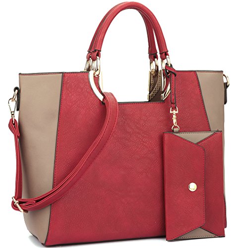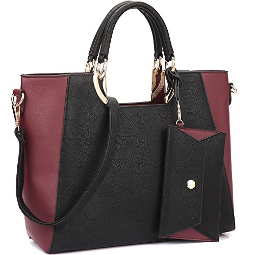 Dasein Women's Designer Color Block Satchel Tote Shoulder Bag Handbag Purse w/ Coin PurseThe tote gets a luxurious upgrade with this glamorous cut out handle design and faux leather! Perfect for a day of shopping or everyday in your busy life, this flat bottom tote has space and style. Removable shoulder strap, interior and exterior back wall zip closure pockets and open top cell phone and item pouch pockets all come together to make this tote for those fashion conscious and on the move!