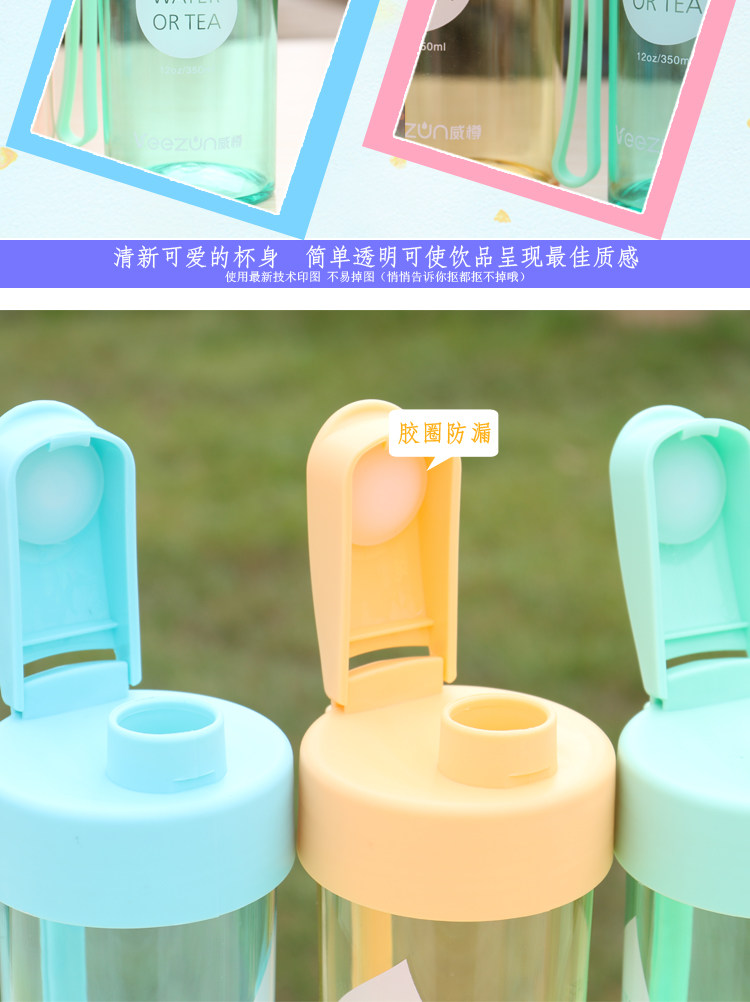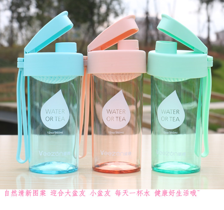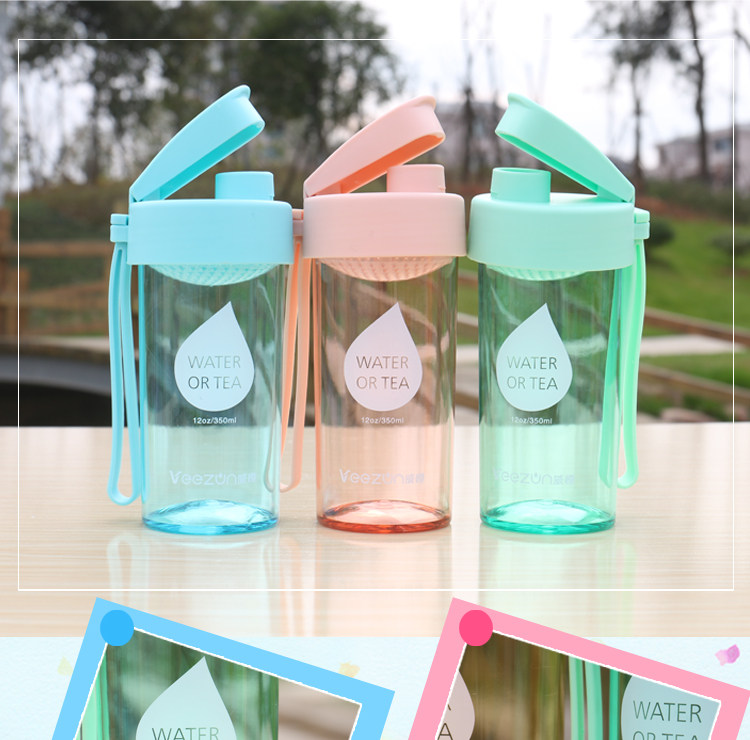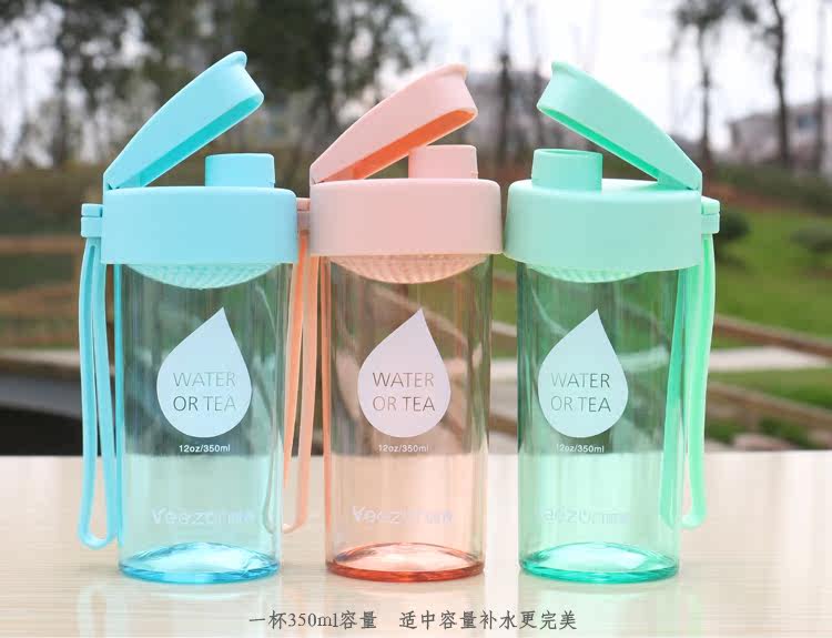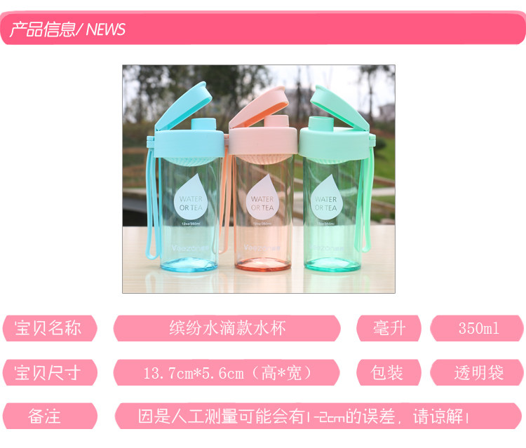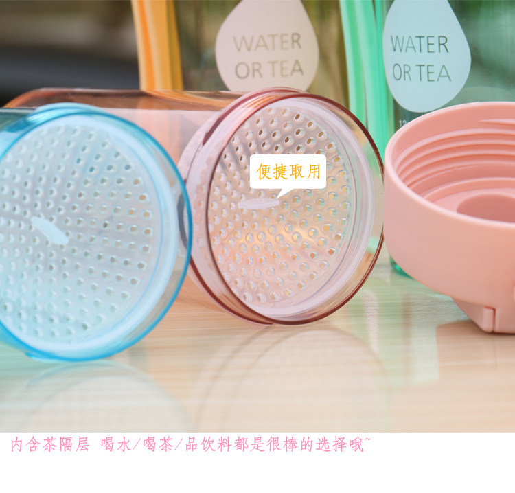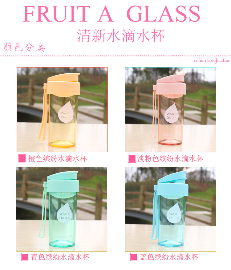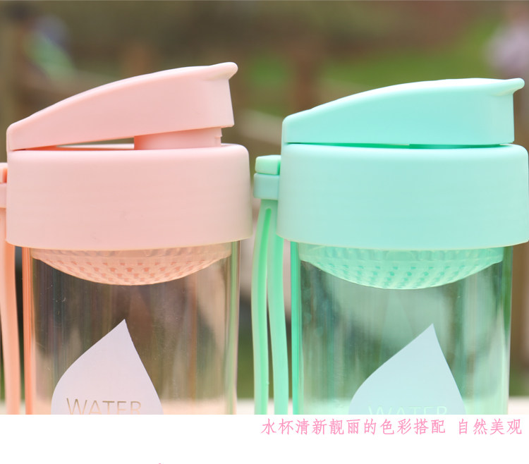 创意水滴透明水杯塑料水瓶夏季便携式随手杯子办公带滤网茶杯男女