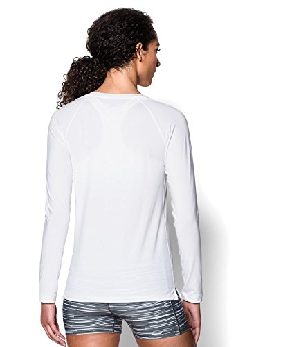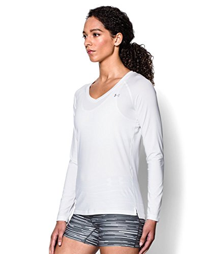Light but locked-in pinhole mesh delivers superior breathability without sacrificing coverage Signature Moisture Transport System wicks sweat to keep you dry & light Lightweight, 4-way stretch construction improves mobility & maintains shape. Anti-microbial technology keeps your gear fresher, longer. Raglan sleeves & flatlock seams unlock mobility & eliminate chafing. Drop-tail hem with side split detail. Feminine V-neck frontFeature
