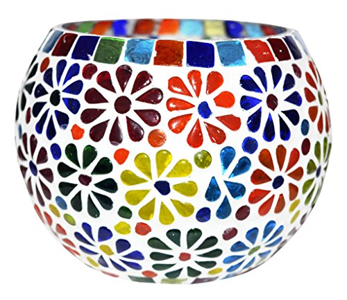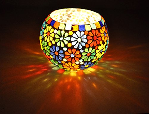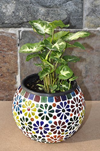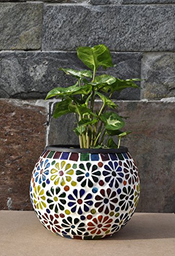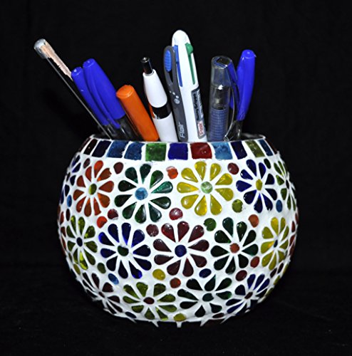 (Candle Holder) : This is Hand-painted glass Mosaic Candle holder. It is handcrafted, colorful stained glass create the mosaic like effect. It can make a very unique and ethnic candle holder by the night. When lit up it makes a mesmerizing rainbow colored pattern all around it. (Flower Pot) : Mid Century Mosaics pots to match your house or garden. These flower pots are created for indoor or outdoor use. These pots are made of glass base that you can put soil and plants directly in them. We like to use these little pots like a flower vase on the outside of our mosaic studio on a shelf below the exterior windows. It's easier to change out the plants seasonally. If you want to decorate it on your study table, you can use it as pen holder also. This beautiful piece of art is having a good space to contain anything. So use it as your own way.