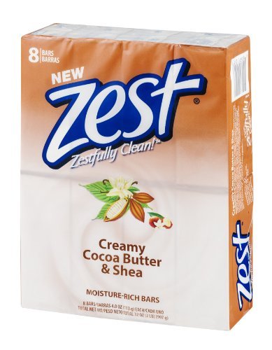 Zest 8-Bar Bath Size Soap, Creamy Cocoa Butter & Shea, 4 Ounce