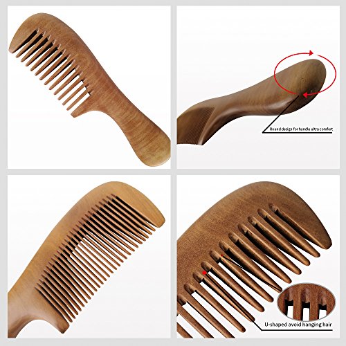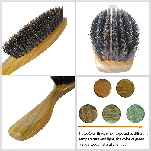 - MATERIAL: Lesser quality boar bristle hair brushes and wooden combs are made up of two or more pieces of bamboo or wood mosaic .Our hand polished boar bristle hair brushes are made of a whole piece of 100% natural fragrant green sandalwood and pure natural boar bristle without plastic or wire. We use fine hair planting technology, hand selected, Utilizing a unique arc grinding process, the comb comes out more rounded, smooth,ensure comb’s teeth are not very sharp which prevents harm to the scalp