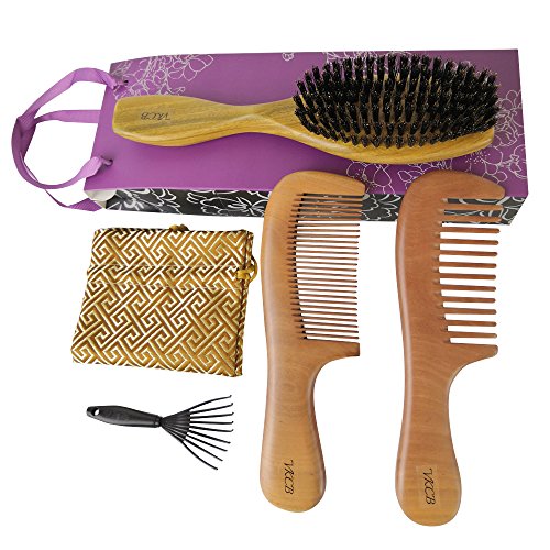 - The Nice Gift of Choice: Our natural boar bristle brush and wood combs make a perfect gift for that special person in your life! Each gift package includes: one boar bristle sandalwood hair brush (8.27 inch x1.97 inch) with nice drawstring bag ,one peach wood comb wide tooth (6.9 inch x 2 inch), one normal tooth comb (6.9 inch x2 inch) and one clean claw.
