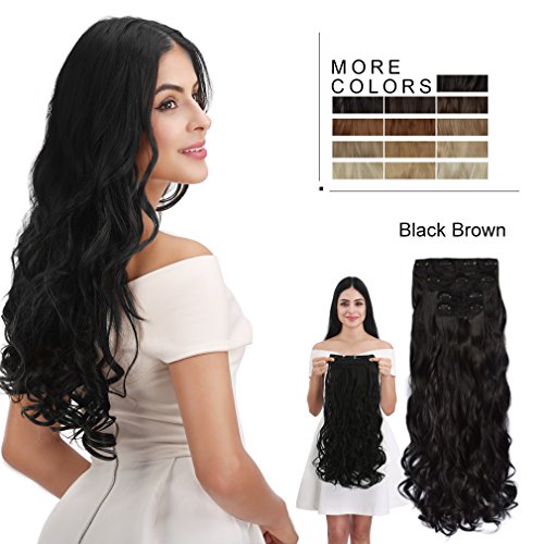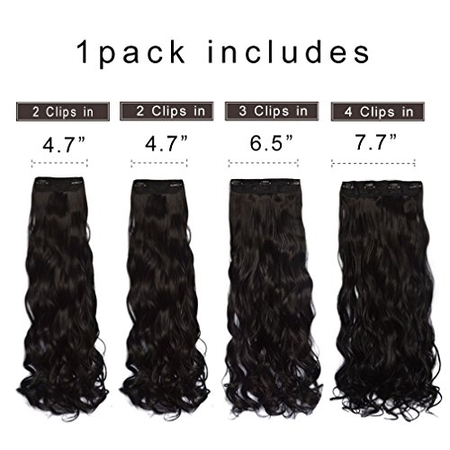 REECHO Hair Extensions 20" Long 260G Thick Volume Clip in on 4 Pieces-Pack 3/4 Full Head Curly Wave Synthetic for Women Color - Black Brown