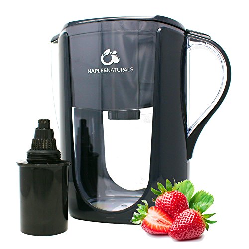 Naples Naturals AOK108BLKX1 Alkaline Water Pitcher with 6-Stage Carbon Water Filter, Removes Chlorine and Contaminants plus Increases pH, Black