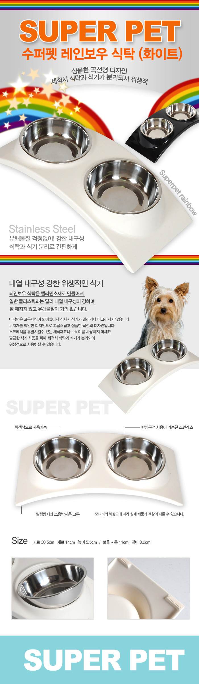 Pet dog dining table white dog cat pot cat bowl rainbow