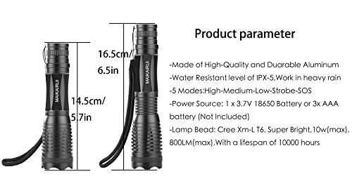 Power Source: 1 x 3.7V 18650 Battery or 3x AAA battery (Not Included),It's brighter with 18650 battery.