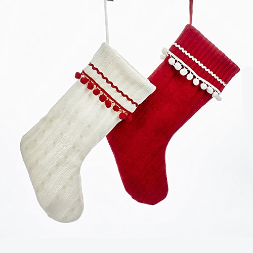 - Sold as a set of two assorted cable knit stockings- one (1) red and one (1) white