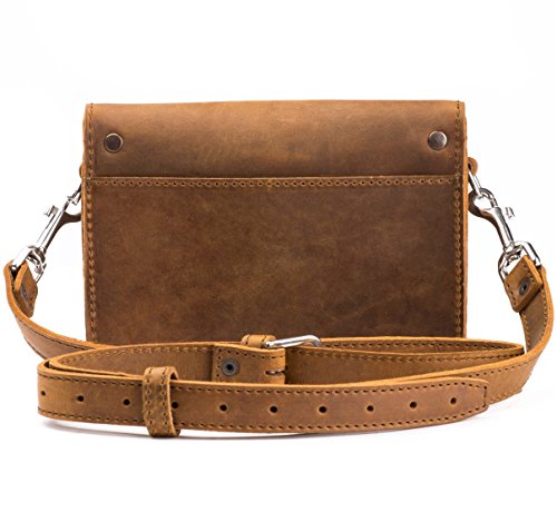 With the body made with just 1 piece of beautiful full grain leather to minimize seams and increase design strength, the Clutch Purse is lightweight and the ideal size for travel necessities. The interior is lined with a strong, soft pigskin leather to keep your valuables and device screens protected while an almost unnoticeable wide exterior back pocket and interior pocket will fit you're your smartphone, tickets, receipts or slim wallet. On the inside of the leather flap, a built-in coin purse helps to keep your clutch organized. When closed, the design will protect contents from rain or dust. Available in Saddleback's 4 leather finishes: Tobacco (Tan), Chestnut (Red-Brown), Dark Coffee (Dark Brown) and Black.