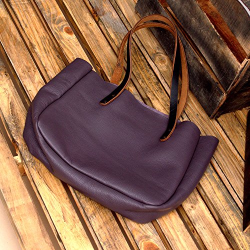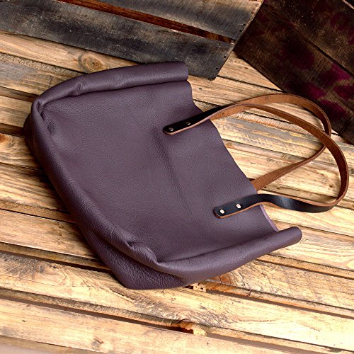 Product Description This handcrafted light purple women's extravagant large leather tote bag is the perfect size to fit all your necessary things. You no longer need to worry about indulging a shopping spree. Made from real cowhide leather having beautiful finish, this Market Tote is Big enough for 17 inch MacBook / laptops and you can carry it freely with this extra spacious handbag. Ladies love to carry their vanity products, a light sweater or a mini makeup bag along with their MacBook and Iphone 6. This can be your next best office shoulder bag if you wish to carry all of that and more. The lightweight leather Tote never gets in the way of your love for shopping. You will love the raw look this minimalist leather carryall tote has because of its no lining. It lets you have the raw feel of the top-grade cowhide leather. So stop thinking twice, and grab yourself a brand new leather tote bag right away! 0