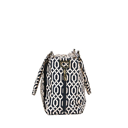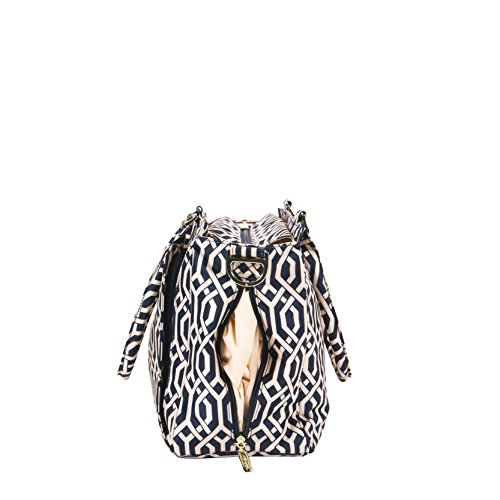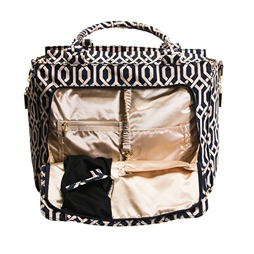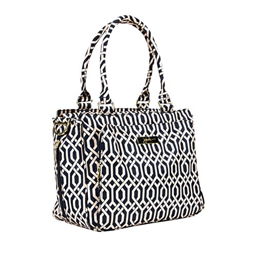 The Ju-Ju-Be Legacy Nautical Collection Be Classy Diaper Bag is like you - a class act. You might spend a majority of your days covered in baby food, or picking up the playroom for the 100th time, but have no doubt: you are still the same classy woman you have always been and will always be. Which is why we want to thank you for the inspiration behind this bag design. Thanks to the feedback from our talented fan base we were able to create the Be Classy: a bag that is a testament to the spirit of the Pink Ladies that make Ju-Ju-Be great, and the standard to which we always strive. A bag that is not only one of our most functional, tailored designs, but also possibly the most timeless. With its sleek design and adjustable messenger strap or structured handbag style carrying options, the Be Classy is the perfect culmination of your favorited Ju-Ju-Be features. A bag so functional you will bring it on your first outing with your newborn, and one so elegant you will carry it well after the diapering days are done. The bag's lining is protected with Agion natural antimicrobial treatment, which inhibits and reduces the growth of odor-causing bacteria, mold and mildew. The outer fabric is treated with Teflon fabric protector, so you can repel stains and keep it clean. The front "mommy" pocket holds keys with a stretch key fob and sunglasses (cleans lenses too.) with plenty of room for more. The main zipper pocket is large enough for diapers, wipes, extra clothes and other items. Keep organized inside with (3) gusseted pockets and (1) zippered pocket. The back pocket is designed with crumb drains to keep this area clean and includes a super cushy memory foam changing pad. The (2) bottle pockets are located on either side of the bag and insulated with Insulate to keep items warm or cold. The Navigator print is tan liner design on a navy background with tan lining. The print is accented by gold, metal hardware, including luggage feet to keep the bottom of your bag clean when you set it down. All Ju-Ju-Be Bags come with a Lifetime Limited Warranty against manufacturing defects when purchased from an Authorized Ju-Ju-Be Dealer. Authorized Dealers can be found in the images. Founded in 2005, Ju-Ju-Be is a Southern California company that uses science, style, and attitude to create diaper bags, purses and other fashionable accessories. Ju-Ju-Be assimilated the most advanced technology possible to create a stylish and intelligent product line that's unrivaled in the industry.Feature