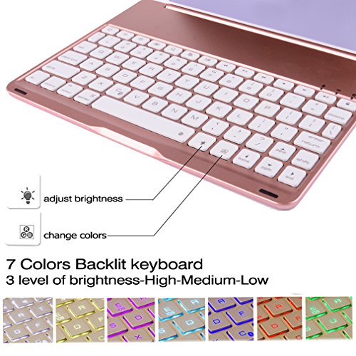 7 Colors Backlit iPad Keyboard : 7 color backlighting design (red/white/yellow/green/cyan/blue/purple), different brightness control, makes the ipad pro keyboard works and looks great in dark, provide a different visual enjoyment for you.
