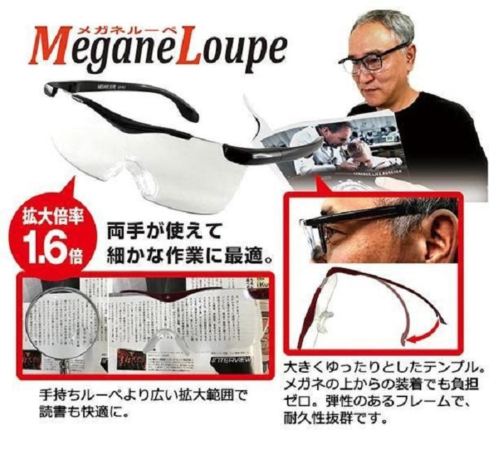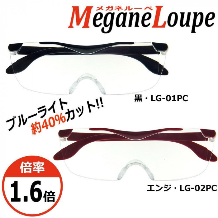 通常のルーペと違い、メガネのようにかけて対象物を拡大して見ることができるルーペです。メガネ・コンタクトレンズの上からも着用することができます。両手が自由に使えて便利です。ブルーライトをカットしてくれるので、スマホやPC作業にも最適です。 |