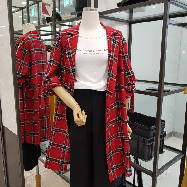 반에이크 롱체크 자켓 입니다^^이상품은 깔끔한 롱자켓인데요 체크에 컬러가 입혀진 상품 입니다^^ 사이즈는 프리입니다^^ 살짝 여유있게 나왔어요.