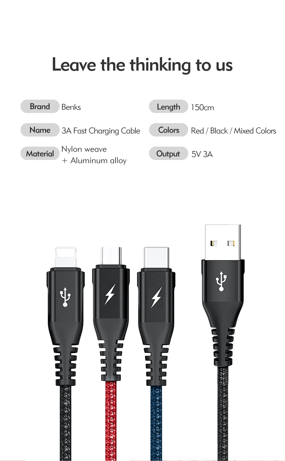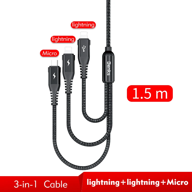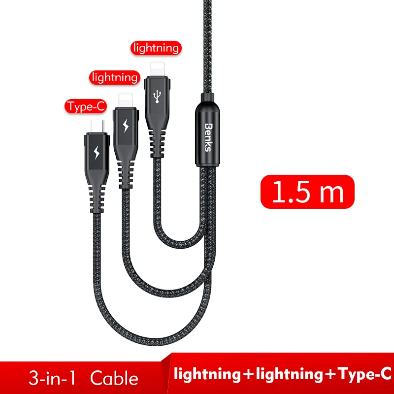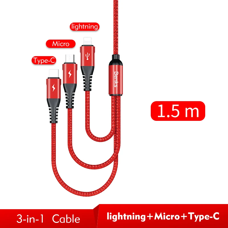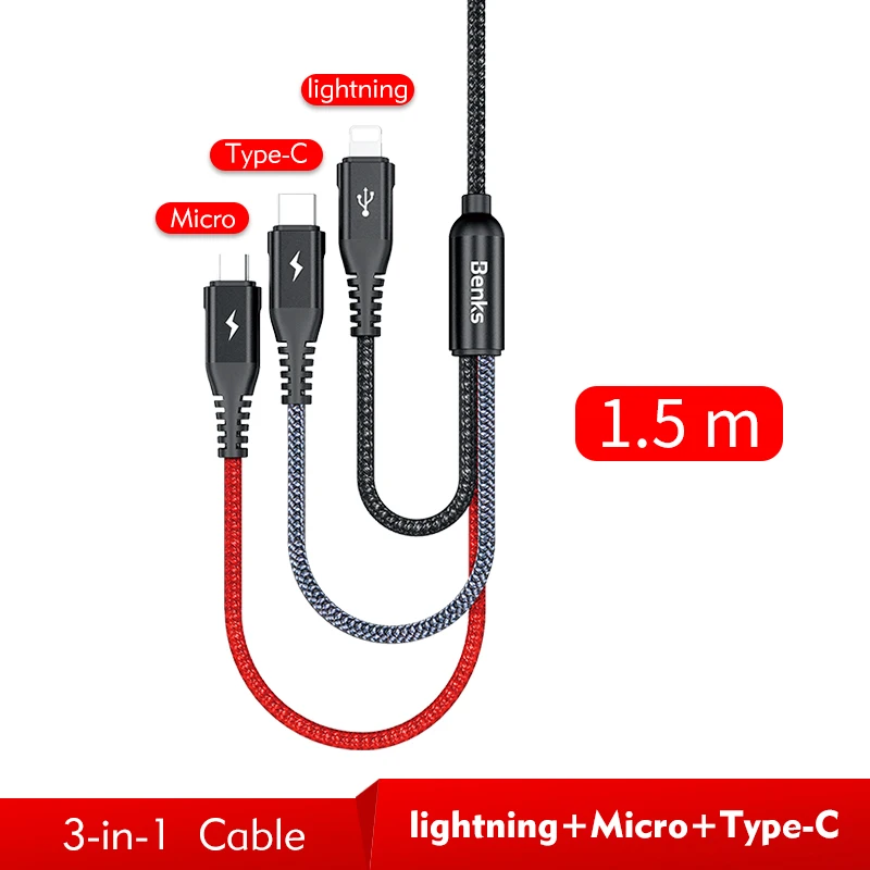 Length:3 IN 1 Cable: 1.5m / Single Cable: 0.25m/1.2m/1.8m