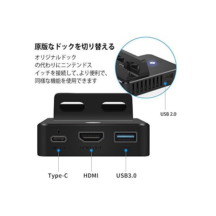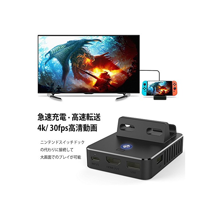 업데이트 된 설계:완벽한4 K / 30fps동영상 표시와 HDMI2.0버젼이 대응됩니다오리지날 도크 대신에《닌텐도스잇치》를 접속하고, 원판의 도크를 타고 넘은 기능을 체험에 옵니다