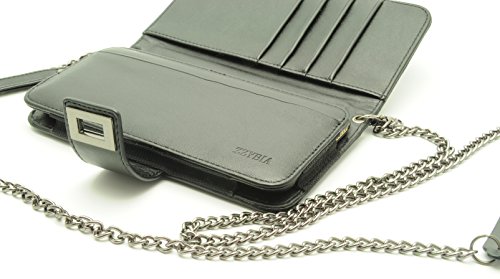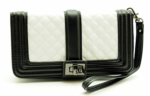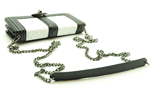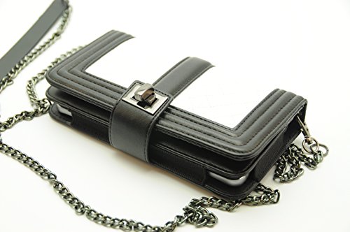 ZZYBIA® Black and White Crossbody / Wristlet Clutch 2 way Coin Zip Mobile Case Wallet Card Holder with Detechable Long Chain For Apple iPhone 6 Plus / Universal fit most smartphones up to 6.5" x 3.5"