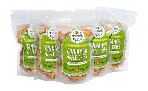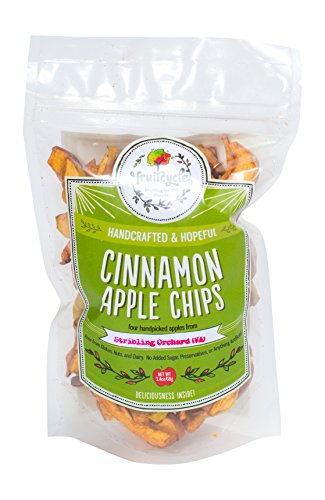 -. Feature : Our apple chips are the perfect snack; they're tasty and healthy with no fat, added sugar or artificial ingredients. / They're gluten free, dairy free, nut free, vegan, paleo, sustainable, and socially responsible. / Each package identifies the small family farm from which the apples were sourced and we use organic cinnamon. / Each bag is the equivalent of four apples.