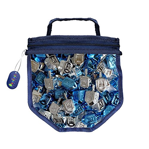 50 Blue and Silver Metallic Dreidels - Draydel Game with Instructions in keepsake Draydel Shaped Bag