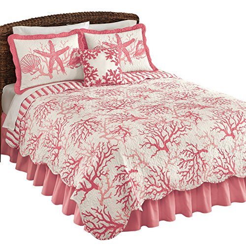 Studio : Collections Etc Publisher : Collections Etc Product Description Ocean Coral Reef Quilt Multi King, Multi, King Description Bright colors and a tropical touch make this coral reef quilt the perfect way to update your bedroom. Beautiful coral designs are featured atop a white background. Reverses to a white and coral striped pattern, and a scalloped edge is the perfect finishing touch. Size available in Twin (64x86), Full/Queen (86x86) or King (102x86). Made from: polyester Shop Collections Etc. for affordable comforters, bedding sets, bedskirts and more. We have the best bedding selection and style for less. From our popular floral and patchwork quilts to our fleece bedding and more, let us help you update your master bedroom or refresh a guest bedroom with affordability and style.