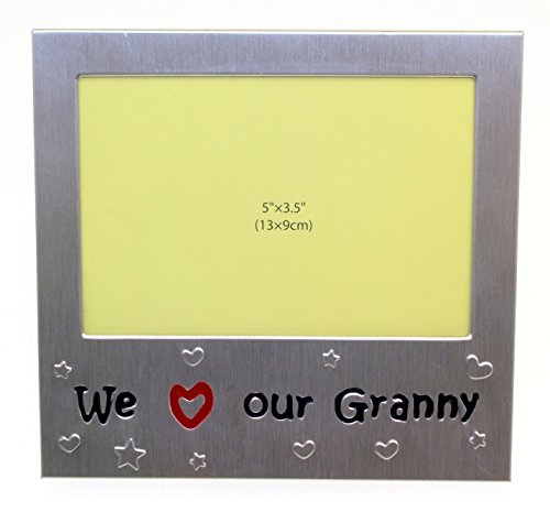 We Love Our Granny - Photo Picture Frame Gift - Will take a photo 5 x 3.5 Inches (13 x 9 cm) - Brushed Aluminium Satin Silver Color.