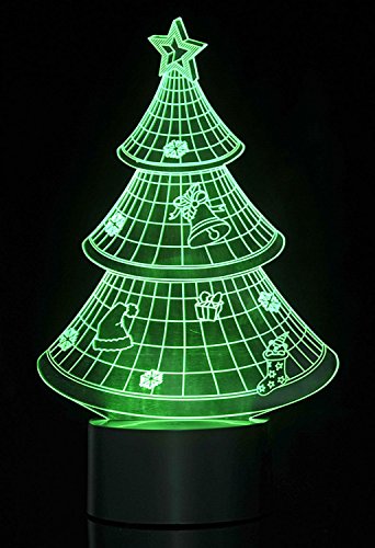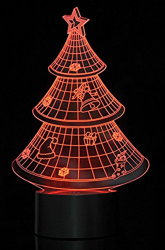 PowerTRC 3D LED Optical Illusion Christmas Tree Night Light Multi-colored USB Powered