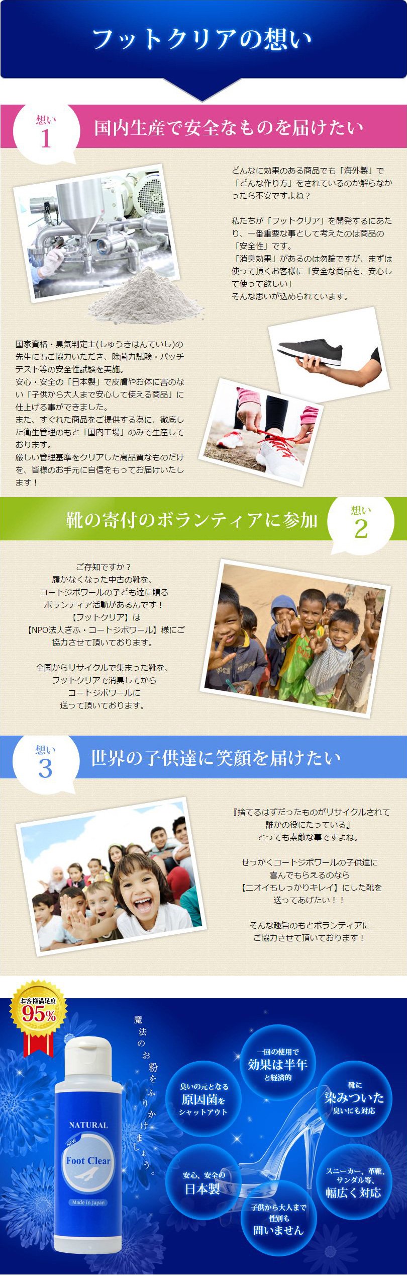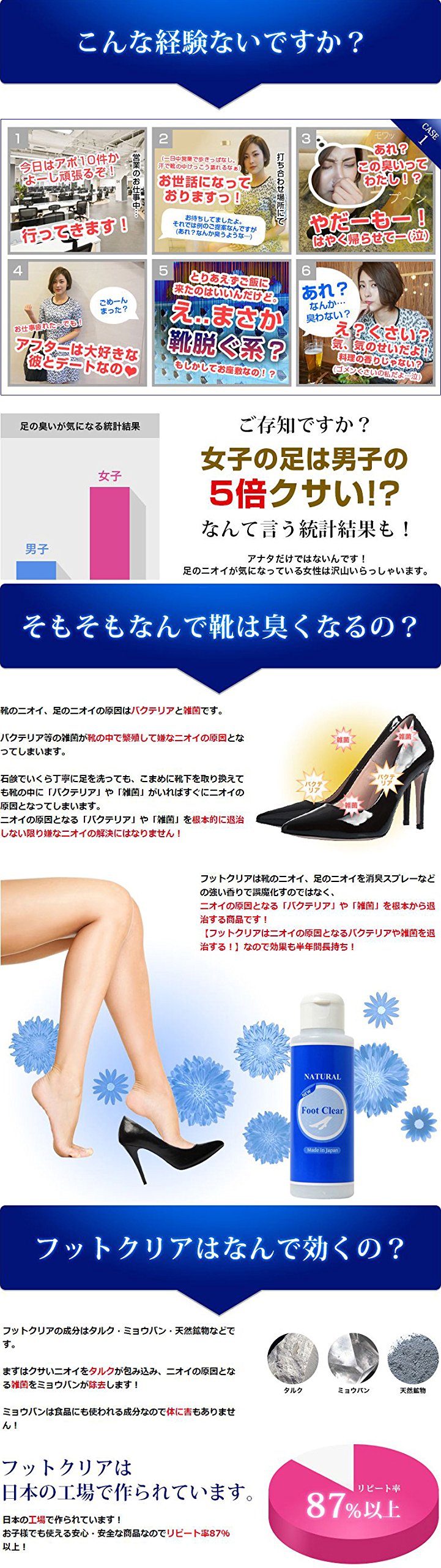 I was concerned about the smell of the foot than before, I used soap to wash my own feet, I bought two of the same shoes and let it rest when wearing it for a day ... but still the smell is I was concerned ... When I got home this product to take off my shoes, I sprinkled it ... and the odor ceased to be totally altogether. Even now I prepare two pairs of the same shoes, but I do not mind the smell at all. It may depend on how to use, but in my case I used 5 weeks and I had it for 1 year.