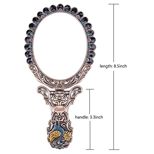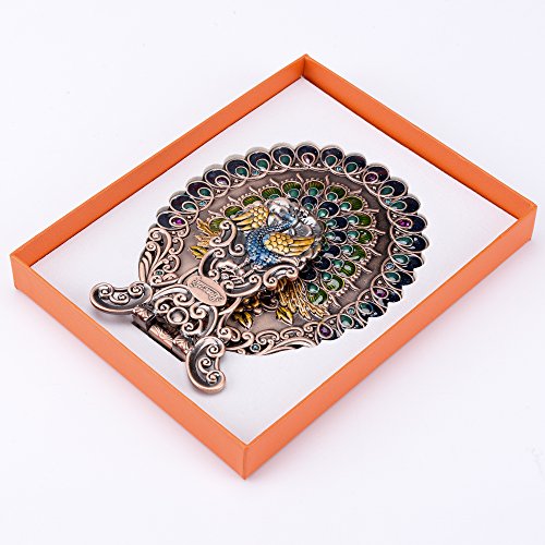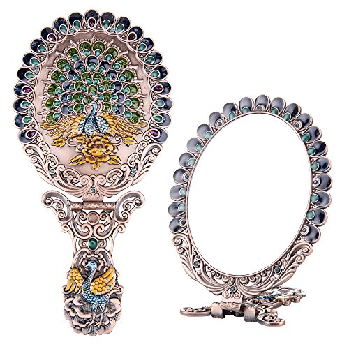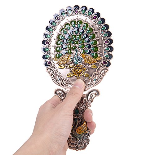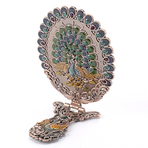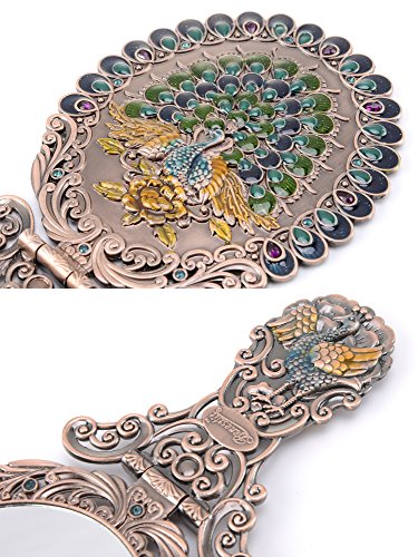 ITEM SPECIFICS -- Peacock shape princess style design. Vintage royal pattern. Attractive color matching. Superb craftsmanship. A great match to your cosmetics set. Hand-painted. On machine-made metal bases, craftsmen manually fill in colors. Great choice for makeup mirror which fully displays uniqueness and taste