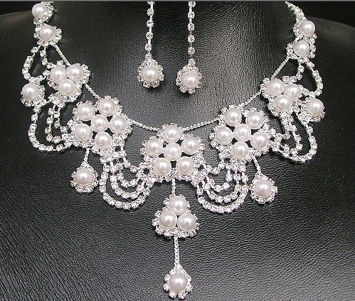 -. Title : 【ノーブランド品】ウェディング ティアラ+イヤリング+ネックレス 3点セット