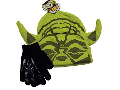 Product DescriptionAwesome boys knit cold weather set consisting of Star Wars knit beanie hat matching gloves.0