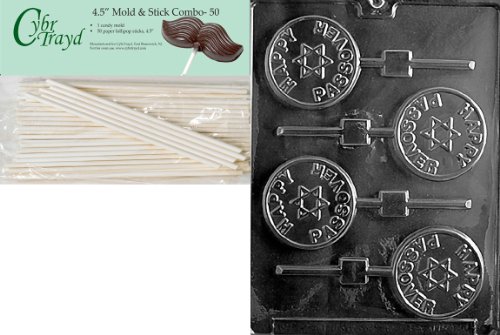 Cybrtrayd Happy Passover Lolly Chocolate Candy Mold with 50 4.5-Inch Lollipop Sticks and Exclusive Cybrtrayd Copyrighted Chocolate Molding Instructions