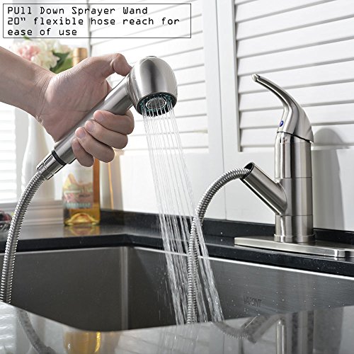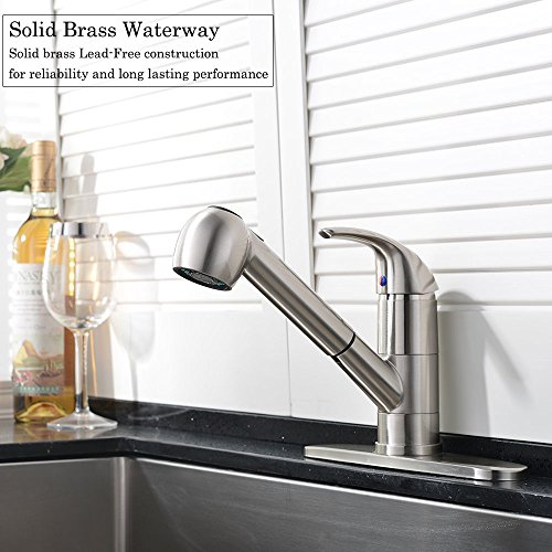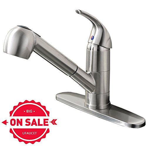 Ufaucet Commercial Stainless Steel Single Lever Single Handle Pull Out Sprayer Prep Kitchen Sink Faucets, Brushed Nickel Finished
