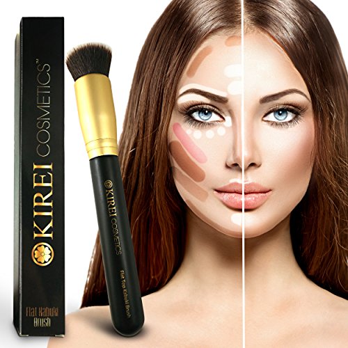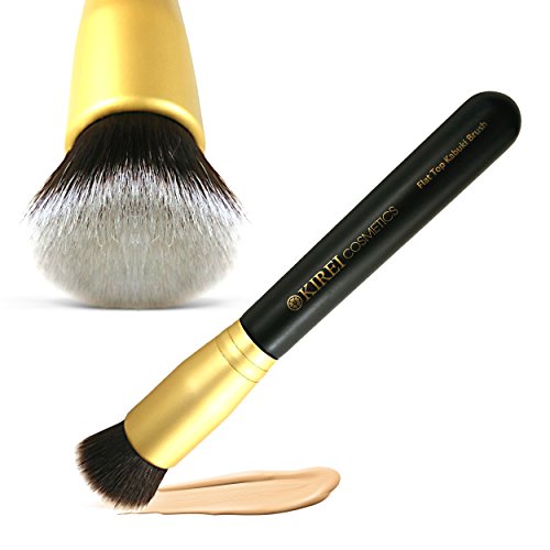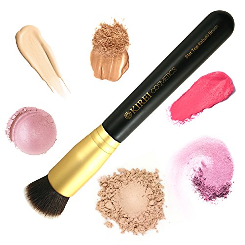 It's time to step up your beauty regimen with our new flat top Kabuki brush, an absolute must-have for any makeup bag. This Kabuki foundation brush is the absolute key to a flawless finish and a flawless face. The Kabuki brush takes its name from the ancient Japanese Kabuki theatre, which required actresses to complete their signature look evenly and flawlessly. The brushes are now popular across the globe and used to perfectly apply everything from cream foundation to mineral makeup. Kirei Cosmetics' high quality Kabuki makeup blending brush features premium quality synthetic fibers ideal for applying liquid foundation, cream foundation, mineral makeup, finishing powder, powdered blush and more. The dense and soft bristles help to achieve smooth, even, full coverage and an airbrushed look. Say goodbye to harsh streaks and unblended lines, and hello to the "New You." With this new face brush, you'll be applying powder foundation and cream blush like a professional makeup artist in no time! The Kirei Cosmetics' professional Kabuki foundation brush is 100% cruelty-free, 100% vegan and PETA-approved. If you're looking for an ethically manufactured real makeup artist brush, choose Kirei Cosmetics today.Feature