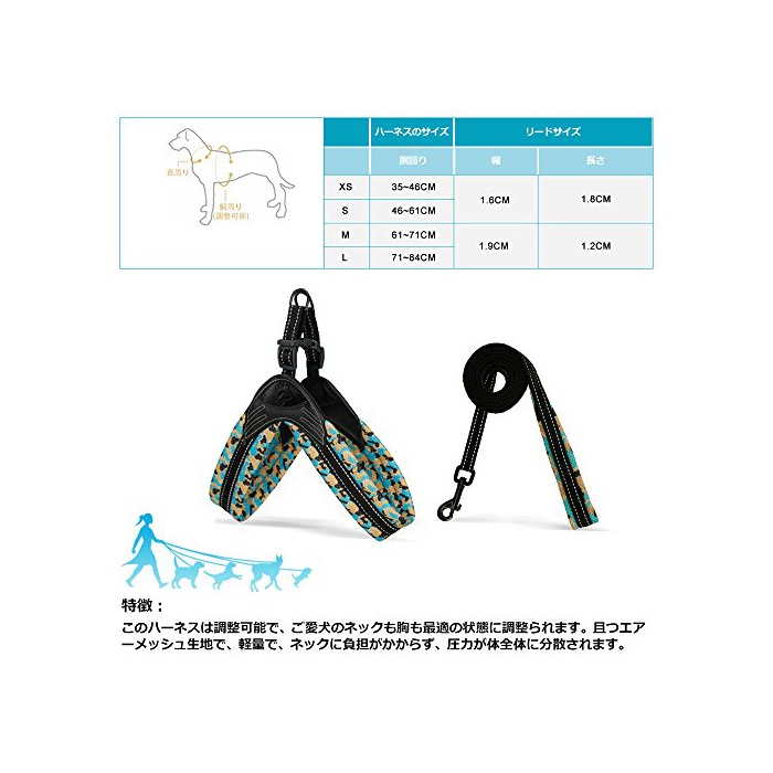 원본상품명:SIAYI(しあい)ペット 用品 犬 ハ?ネス&リ?ド セット 犬用 胴輪 ベスト式 エア?メッシュ 調節可能 反射?光可能 ?量 ソフト 安全 お散? お出かけ用 小型 中型 大型犬??v
